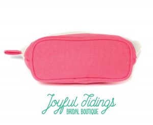 Complete your bridesmaid’s gift package with these beautiful cosmetic bags! Available in six different vibrant colors, they perfectly complement our bridesmaids’ robes (https://www.jtbridal.com/product-category/bridesmaid-gifts/bridesmaids-robes/).