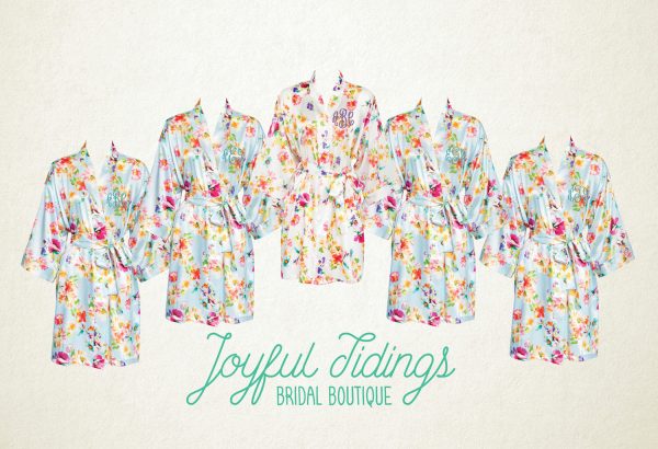 Be the first to review “FREE ROBE Set of 7+ Personalized Angel Blue Catalina Floral Satin Kimono Robes”