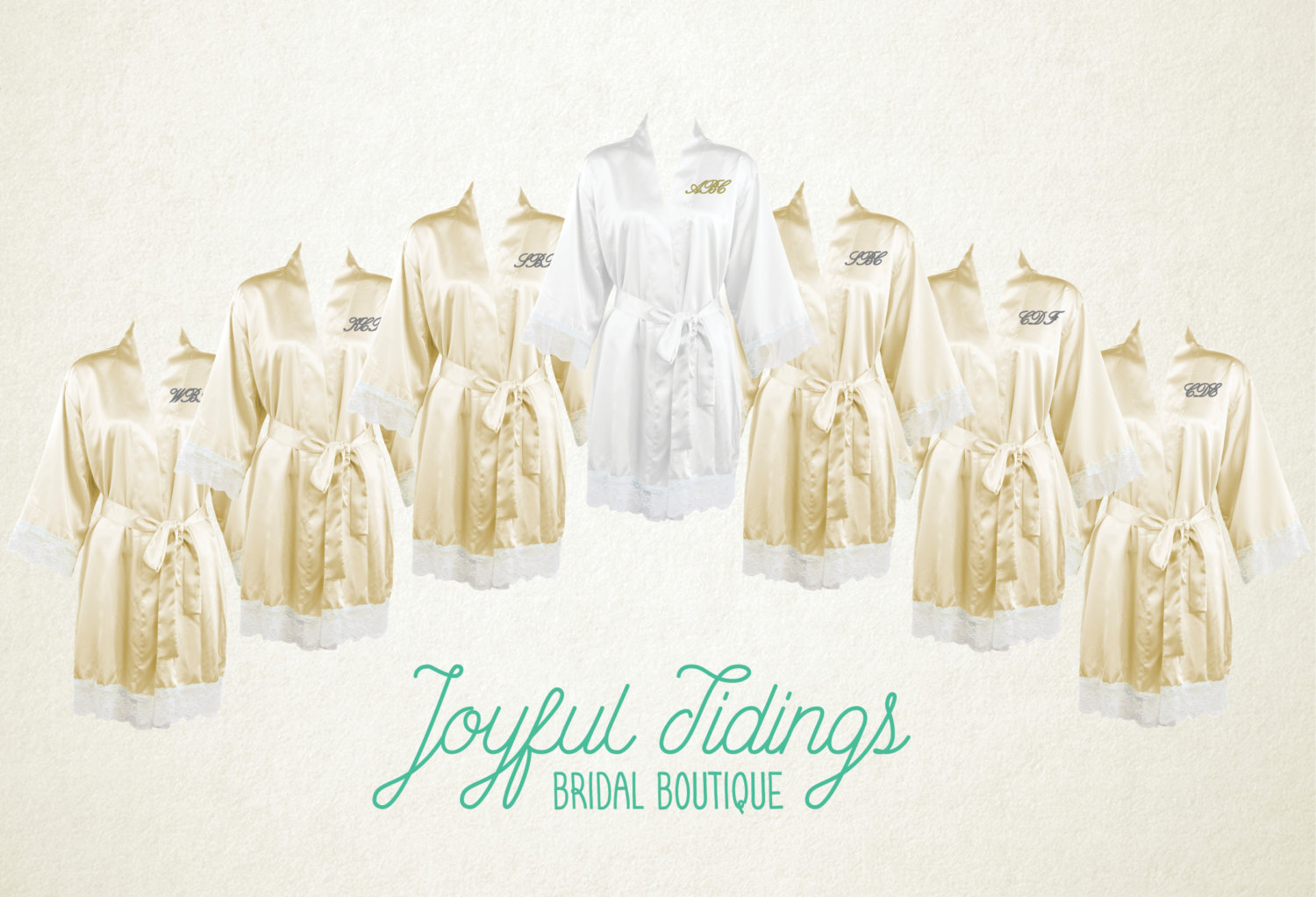Be the first to review “FREE ROBE Set of 7+ Personalized Champagne Satin Lace Kimono Robes”