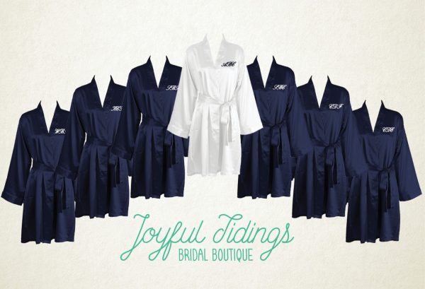 Be the first to review “SALE Set of 7+ Personalized Navy Blue Satin Kimono Robes”