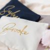Get ready in style with embroidered, monogrammed beach tote bags! These bags are made with a 70% cotton and 30% polyester canvas exterior. Features include a durable robe handle, a top snap closure to secure contents, and a full lining with tone on tone polyester. Best of all, they are practical too, featuring water resistant canvas fabric that is durable and easy to clean. These bags are perfect as stylish goody baskets for your bridesmaids’ gifts!